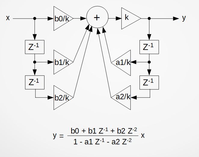 //{b0/k, b1/k, b2/k, a1/k, a2/k, log2(k) }